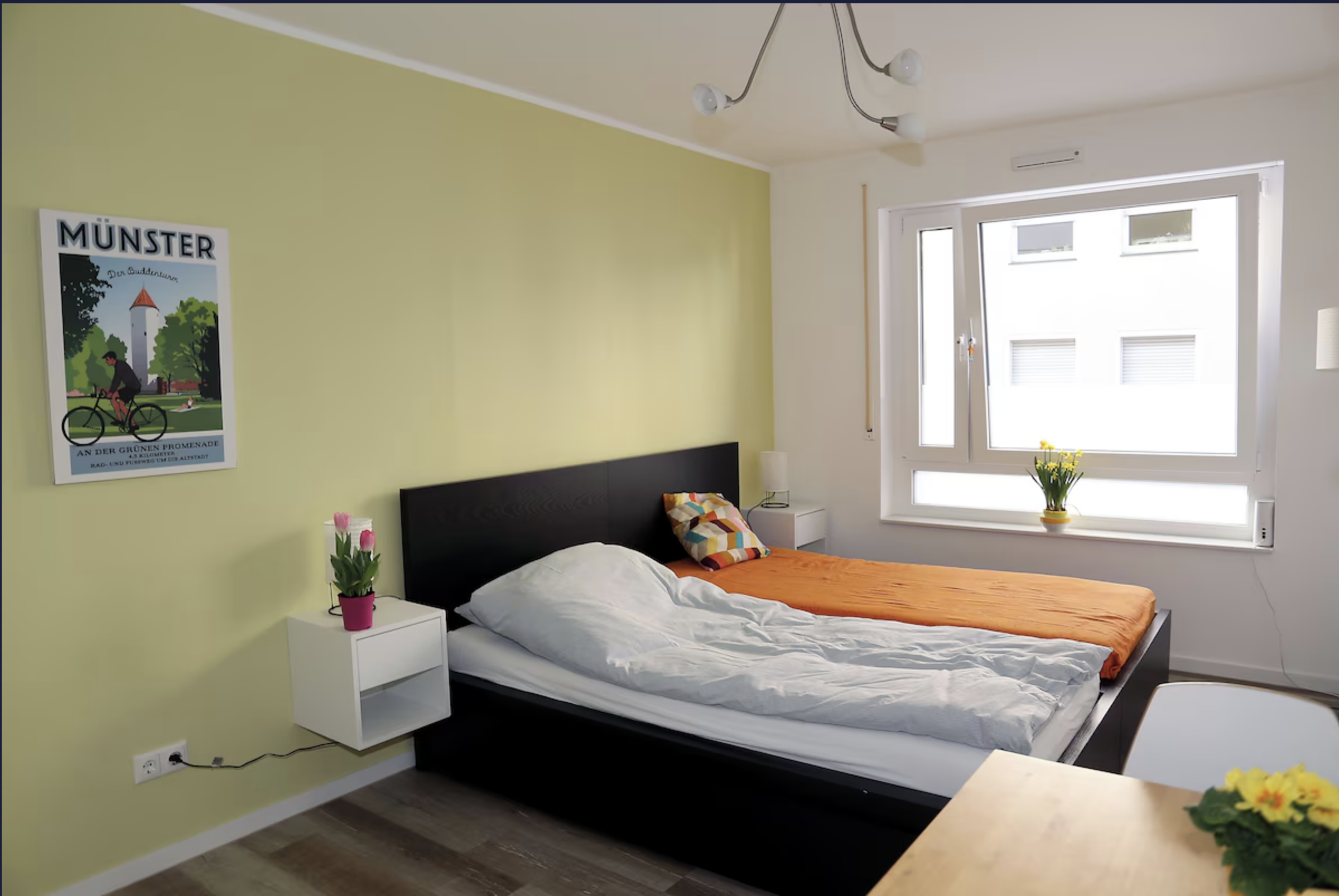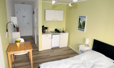 Münster mit seinen zahlreichen Sehenswürdigkeiten und seiner kulturellen Vielfalt ist immer einen Besuch wert. In unseren modern eingerichteten Appartements finden Sie nicht nur eine Unterkunft in fußläufiger Entfernung zur Innenstadt. Sie wohnen bei Ihrem Aufenthalt auch in einem der attraktivsten und beliebtesten Viertel der Stadt. Ob Cafés, Kneipen, Restaurants oder Einkaufsmöglichkeiten: Alles liegt in unmittelbarer Nähe. Falls Sie nicht mehr so gut zu Fuß sind, dann liegt nur wenige Meter von Ihrer Unterkunft entfernt eine Bushaltestelle, von der Sie schnell ins Zentrum gelangen. Und natürlich lässt sich die Fahrradstadt Münster auch wunderbar mit dem Drahtesel erkunden. Mietfahrräder erhalten Sie u.a. hier. Wenn Sie Ausflüge in die nähere Umgebung planen, dann sind Sie in wenigen Minuten am Hauptbahnhof.