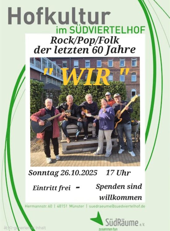 Rock/Pop/Folk der letzten 60 Jahre; Sonntag 26.10.2025, 17 Uhr